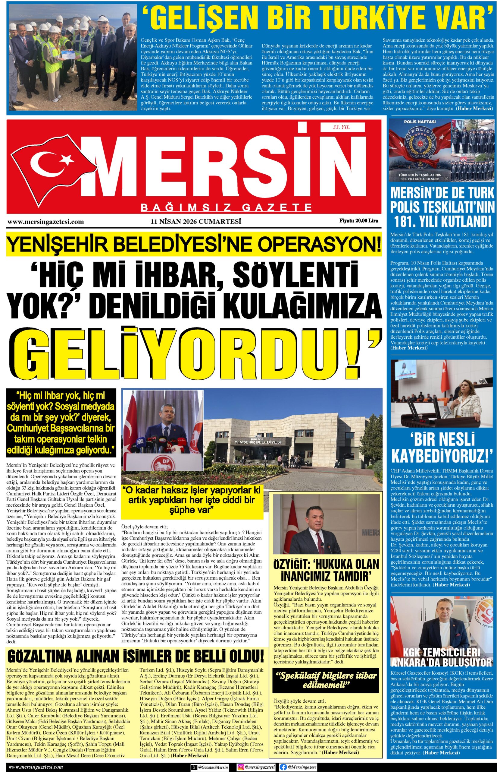 MERSİN YENİŞEHİR BELEDİYESİ’NE OPERASYON GÖZALTINA ALINAN İSİMLER BELLİ OLDU